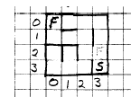 This is breadth-first search. At each step we expand (remove from the collection of squares under exploration, and add all the squares we can reach in one step to the collection) the oldest square in the collection. What data structure does this suggest? If we list the sequence in which squares are explored in depth-first search, we see that the search always moves to adjacent squares: